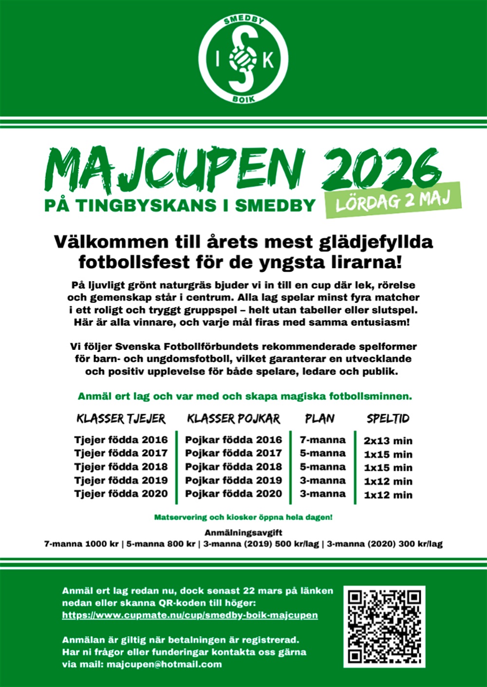 Nu är anmälan öppen för Majcupen 2026!Speldag är lördag 2 maj.